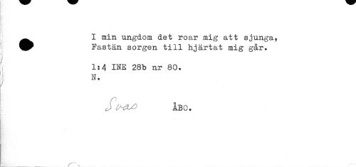 //// ^^ I min ungdom det roar mig att sjunga, //// ^^ Fastän sorgen till hjärtat mig går. //// 1:4 INE 28b nr 80. //// N. //// J ^^ ÅBO. //// ....... ........ ////