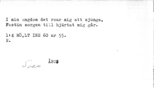//// I min ungdom det roar mig att sjunga, ; //// Fastän sorgen till hjärtat mig går. //// 1:4 MÖ,LT INE 60 nr 55. //// N. //// i //// i //// i //// * //// } //// i //// ÅBOS //// & //// k //// ! //// t //// E //// i //// ? //// i //// : ////
