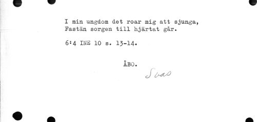 //// I min ungdom det roar mig att sjunga, //// Fastän sorgen till hjärtat går* //// 6:4 INE 10 s. 13-14. //// ÅBO. //// t' //// ^ - ////