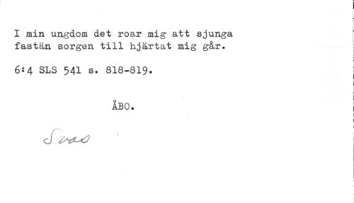 //// I min ungdom det roar mig att sjunga //// fastän sorgen till hjärtat mig går* //// c //// 6:4 SLS 541 s. 818-819. I //// ÅBO. j //// ( //// i //// d ^^ ////