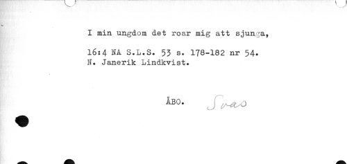 //// ** //// I min ungdom det roar mig att sjunga, //// 16:4 NA S.L.S. 53 s. 178-182 nr 54* //// N. Janerik Lindkvist. //// ÅBO. j ////