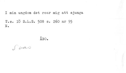 //// I min ungdom det roar mig att sjunga //// T.s. 10 S.L.S. 508 s. 260 nr 95 //// N. //// ÅBO. //// J ////