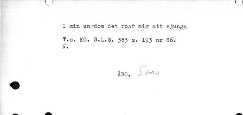 //// I min ungdom det roar mig att sjunga //// T.s. KÖ. S.L.S. 383 s. 193 nr 86. //// N. //// * //// ÅBO. ////