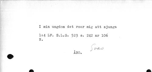 //// ti'.'' //// S. 1.',-..' //// I min ungdom det roar mig att sjunga //// 1:4 LF. S.L.S. 523 s. 242 nr 106 //// N. //// j ^^ //// ^ ÅBO. ////