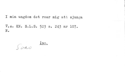 //// ) //// i //// I min ungdom det roar mig att sjunga //// i //// T.s. KN. S.L.S. 523 s. 243 nr 107. //// N. //// ÅBO. ////