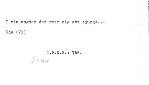 //// <- //// B //// - //// I min ungdom det roar mig att sjunga... //// t- //// Eda (VI) //// c //// I.F.G.H.: 768. ! //// ! //// i //// i ////