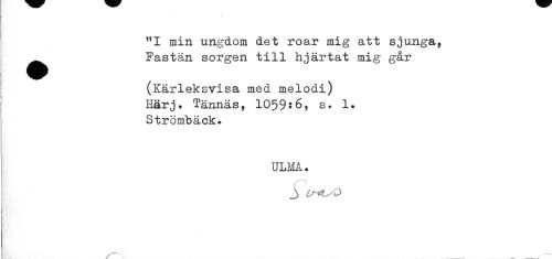//// ! (Kärleksvisa med melodi) //// Härj. Tännäs, 1059:6, s. 1. //// Strömbäck. //// ULMA. //// J ////