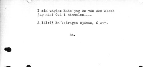 //// A 141:63 En bedragen sjöman, 6 str. //// t //// i //// RA. //// i ////