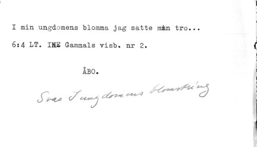//// I min ungdomens blomma jag satte mim tro... //// < //// r* //// E //// 6:4 LT. INE Gammals visb. nr 2. ^ //// i //// & //// ÅBO. ! ////