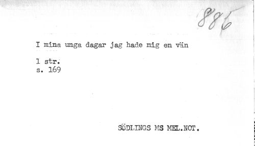 //// * * . . . - . . - . . ^ , //// I mina unga dagar jag hade mig en vän //// 1 str. //// s. 169 //// ! //// r //// f //// . //// t //// f //// r //// ÄDLINGS MS MEL.NOT. j //// [ //// t- ////