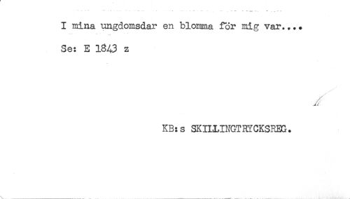 //// I mina ungdomsdar en blomma för mig var.... //// - //// Se: E 1343 z //// KB:s SKILLDJGT3XCKSREG. ////