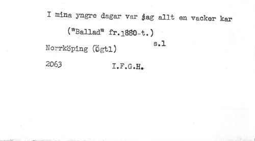 //// I mina yngre dagar var gag allt en vacker kar //// ("Ballad" fr.iSSOt.) //// Norrköping (Sgtl) ^ //// ^063 I.F.G.H., //// ... . . j ////