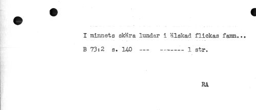 //// I minnets skära lundar i älskad flickas famn... //// *" — * --- ...... //// B 73:2 s. 140 — --- 1 str. //// RA ////
