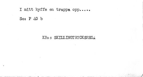 //// I mitt kyffe en trappa opp..... //// Se: P 40 b //// t //// KB:s SKILLINGTHYCKSRBGi //// v //// - . .. / ////
