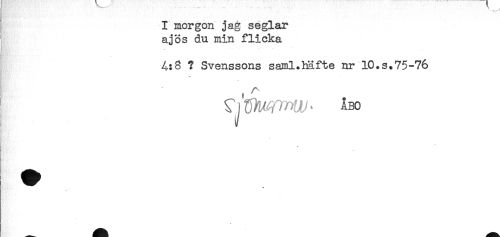 //// I morgon jag seglar //// a jos du min flicka //// 4:8 ? Svenssons saml.häfte nr 10.s.75-76 //// ABO ////
