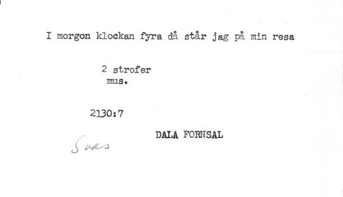 //// I morgon klockan fyra då står jag på min resa //// 2 strofer //// mus. //// 2130:7 //// DALA FORNSAL ////