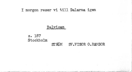 //// I morgon reser vi till Dalarna igen //// ! //// . //// i //// t //// Dalvisan //// s. 187 //// Stockholm //// STBSM SV .VISOR 0. RAMSOR I //// < ////