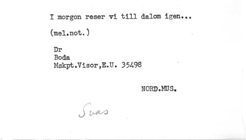 //// I morgon reser vi till dalom igen... //// (mel.not.) //// Dr //// Boda //// Mskpt.Visor,E.U. 35A93 //// NORD.MJS. //// j ////