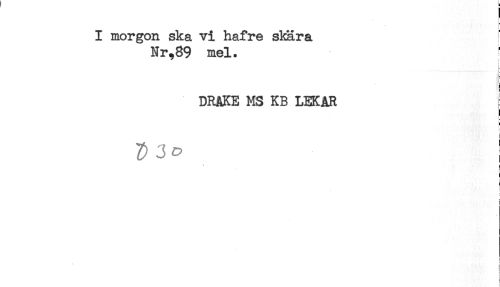 //// I morgon ska vi hafre skära //// Nr,89 mel. ^ //// ^ i //// < //// DRAKE MS KB LEKAR { //// - //// i //// r //// i //// j //// F //// < //// ! //// t //// ! ////