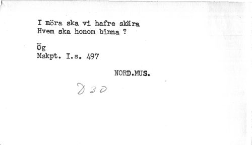 //// I mor a ska vi hafre skära //// Hvem ska honom binna ? //// Og //// Mskpt. I.s. 497 //// NORD.MUS. ////