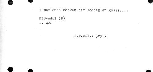 //// I morlanda socken där boddex en gosse.... //// Klövedal (B) //// s. 42. //// - //// . //// I.F.G.H.: 5291. //// [ * ////