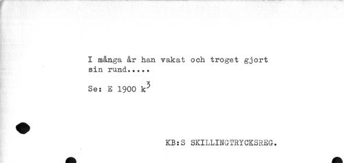 //// I många år han vakat och troget gjort //// sin rund..... //// Se: E 1900 k^ //// KB:S SKILLINGTRYCKSREG. ////