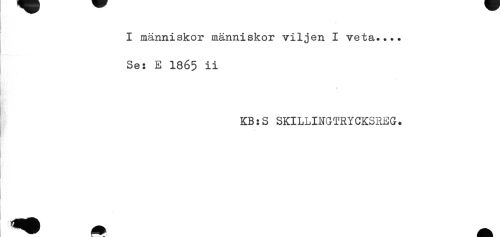 //// I människor människor viljen I veta.... //// Se: E 1865 ii //// i //// KB:S SKILLINGTRYCKSREG. ////