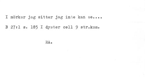 //// I mörker jag sitter jag inte kan se.... //// B 27:1 s. 185 I dyster cell 9 str.kom. //// RA. ////