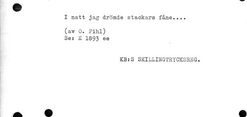 //// I natt jag drömde stackars fåne.... //// (av 0. Pihl) //// Se: E 1893 ee //// ! //// KB:S SKILLINGTRYCKSREG. //// < - ////