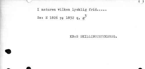 //// I naturen vilken lycklig frid..... //// Se: E 1826 p; 1832 q, g-^ //// KB:S SKILLINGTRYCKSREG. ////
