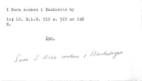 //// I Nora socken i Backersta by //// 1:4 LU. S.L.S. 512 s. 522 nr 246 //// N. //// ÅBO. //// J ^^ ^ ////