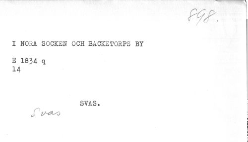 //// I NORA SOCKEN OCH BACKETORPS BY //// E 1834 q //// 14 //// S VAS. //// ! //// H //// i //// j //// i //// t //// i //// b ////