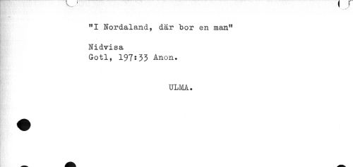 //// "I Nordaland, där bor en man" //// Nidvisa //// Gotl, 197:33 Anon. //// ULMA. ////