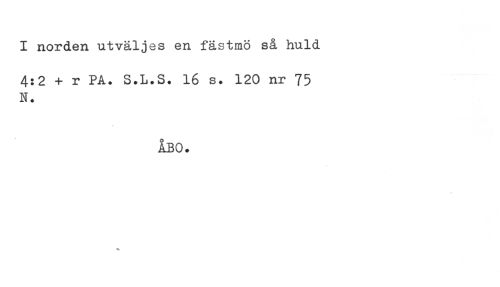 //// I norden utväljes en fästmö så huld //// 4:2 + r PA. S.L.S. 16 s. 120 nr 75 //// N. //// ÅBO. ////