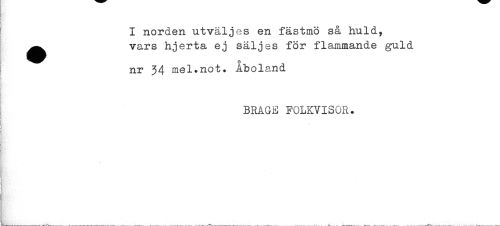 //// ! I norden utväljes en fästmö så huld, //// ^^ vars hjerta ej säljes för flammande guld //// nr 34 mel.not. Aboland //// BRAGE FOLKVISOR. //// ) //// y //// i //// - //// .... _ _ _........... ////