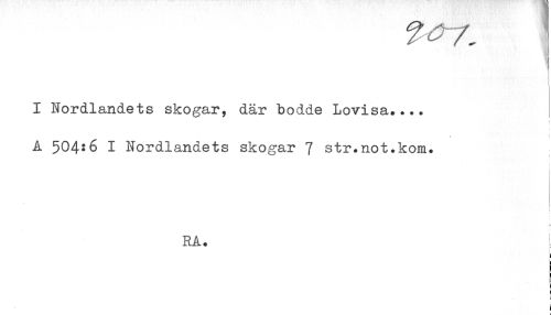 //// I Nordlandets skogar, där bodde Lovisa.... //// i //// A 504:6 I Nordlandets skogar 7 str.not.kom. //// * //// < //// RA. //// < //// t //// L //// i ////