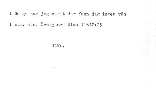 //// I Norge har jag varit der fann jag ingen vän //// 1 str. mus. Övergaard Ulma 11642:23 j //// i //// ! //// L //// UMM.. ////