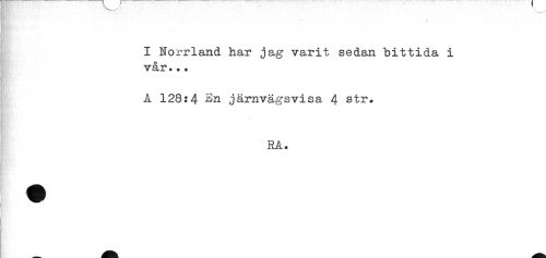 //// I Norrland har jag varit sedan bittida i //// vår... //// A 128:4 Sn järnvägsvisa 4 str. //// RA. ////