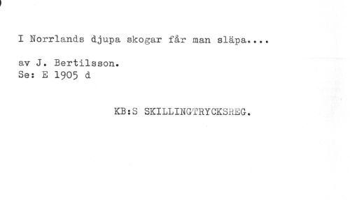 //// I Norrlands djupa skogar får man släpa...* //// av J. Bertilsson. //// Se: E 1905 d //// KB:S SKILLINGTRYCKSREG. ////