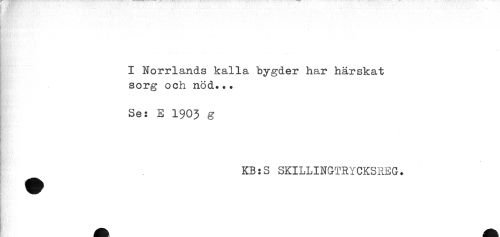 //// I Norrlands kalla bygder har härskat //// sorg och nöd... //// Se: E 1903 g //// ^ KB:S SKILLINGTRYCKSREG. ////
