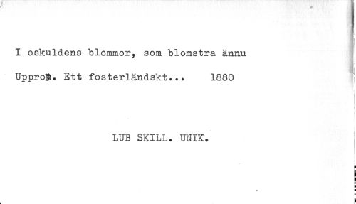 //// I oskuldens blommor, som blomstra ännu //// UpproB. Ett fosterländskt... 1880 ' //// t //// f //// LUB SKILL. UNIK. //// ) //// = //// H //// H //// ! ////