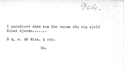 //// I paradiset Adam kom Han ensam såg sig sjelf //// bland djuren....... //// B 4, s. 48 Wisa. 4 str. //// i //// RA. ! //// < //// < //// ! //// ! //// ! ////