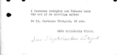 //// I Pastorns trädgård och Tabuens haim //// ^^ Går ett af de nattliga spöken //// T //// Nr 59, Pastorns Trädgård? 26 str. //// < //// ' SÄVE GOTLÄNDSKA VISOR. ////