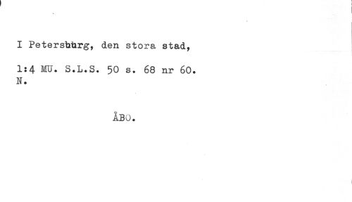 //// I Petershtrg, den stora stad, //// 1:4 MU. S.L.S. 50 s. 68 nr 60. //// N. //// ÅBO. ////