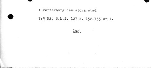 //// § //// I Petterborg den stora stad //// ^ 7:5 S.L.S. 127 s. 152-153 nr 1. //// * //// ÅBO. //// y //// % ////