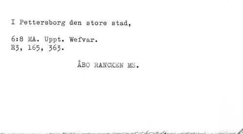 //// I Pettersborg den store stad, //// 6:8 MA. Uppt. Wefvar. //// R3, 165, 363. //// ÅBO RANCKEN MS. ////