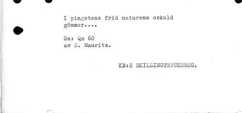 //// I pingstens frid naturens oskuld //// ^ gömmer.... //// ; Se: Qc 60 //// i av E. Mauritz. //// * //// KB: S SKILLINGTRYCKSREG. ////