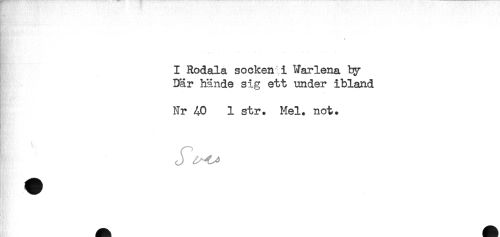 //// I Rodala socken i Warlena ty //// Där hände sig ett under ibland //// Nr 40 1 str. Mel. not. //// * //// ! y ////