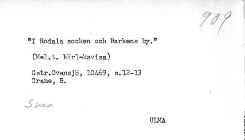 //// Rodala socken och Barkens by." ! //// t //// t //// (Mel.t. kärleksvisa) //// Gstr.Ovansjö, 10469, s.12-13 //// Grane, B. //// < //// ULHA ! //// ! //// ! ////