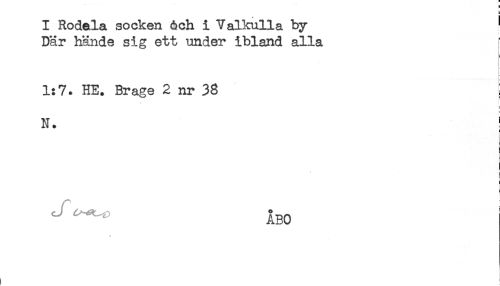 //// I Rodala socken &ch i Valkulla by * //// Där hände sig ett under ibland alla [ //// 1:7. HE. Brage 2 nr 38 //// E //// N- ! //// * //// i //// ÅBO //// * ////